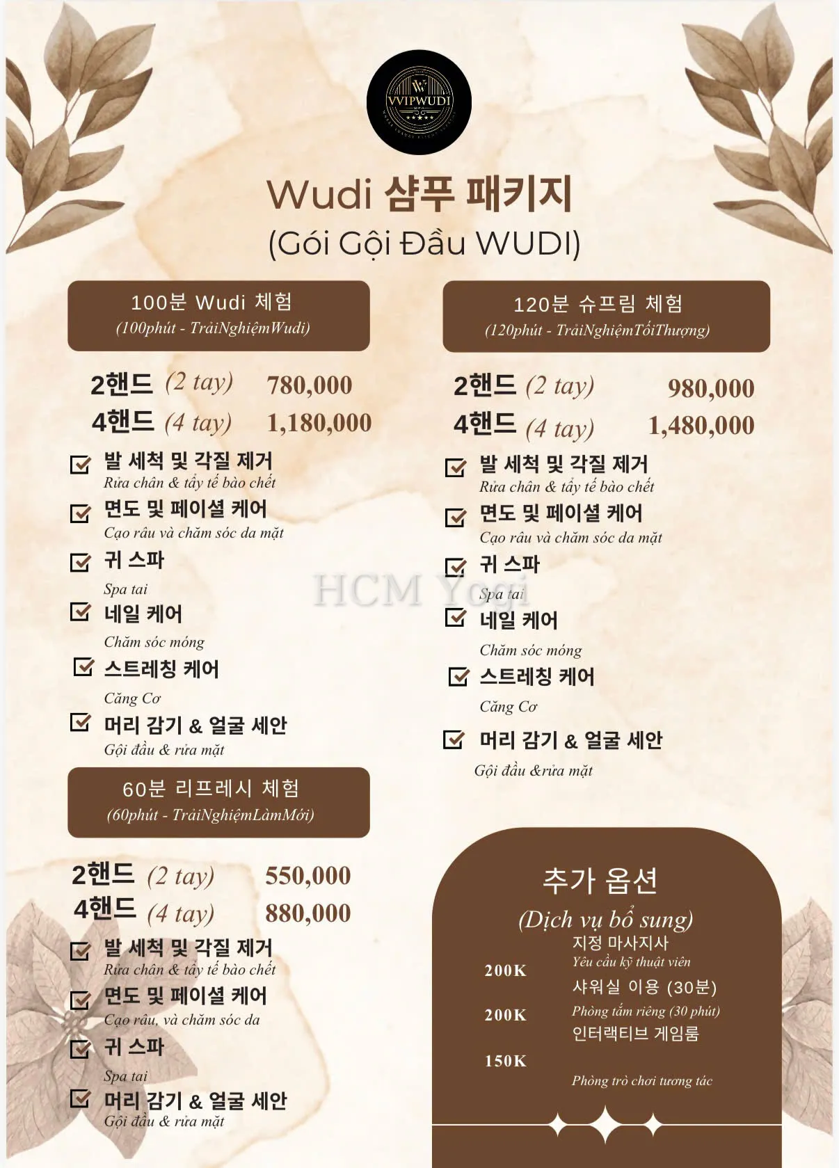 VVIP WUDI 이발소 메뉴판입니다.