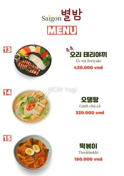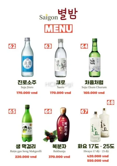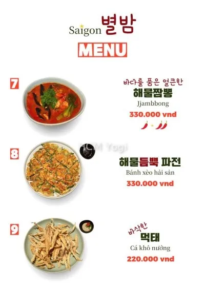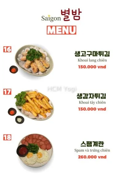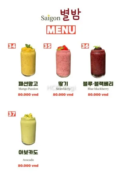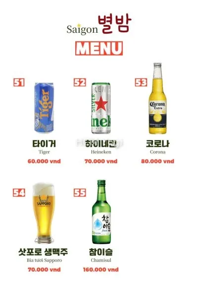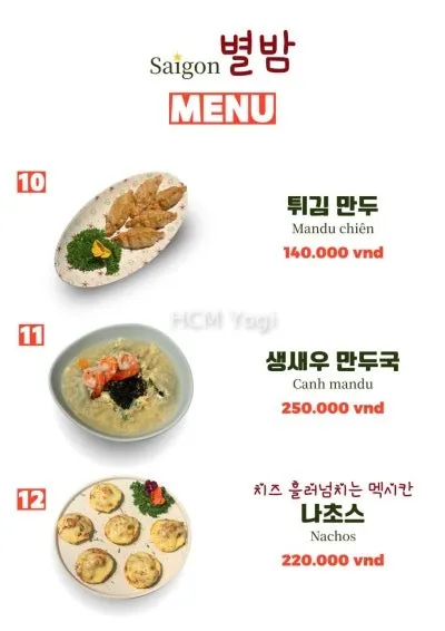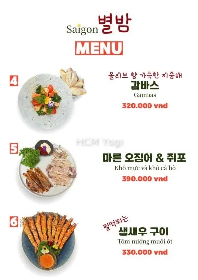 사이공 별밤 메뉴판입니다.